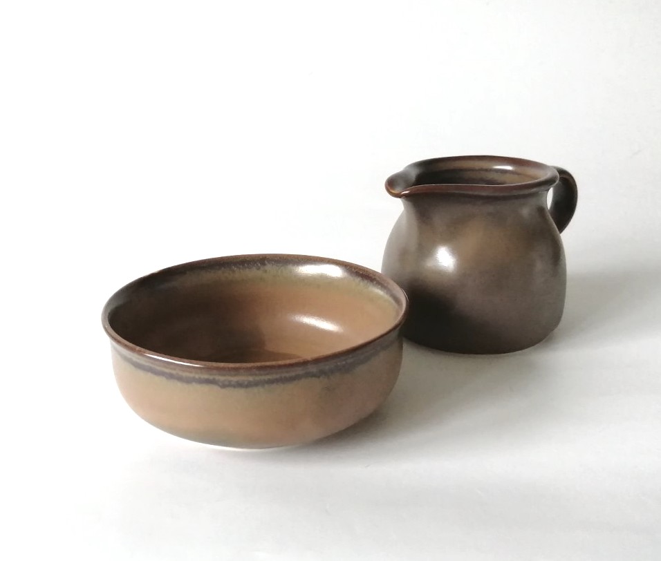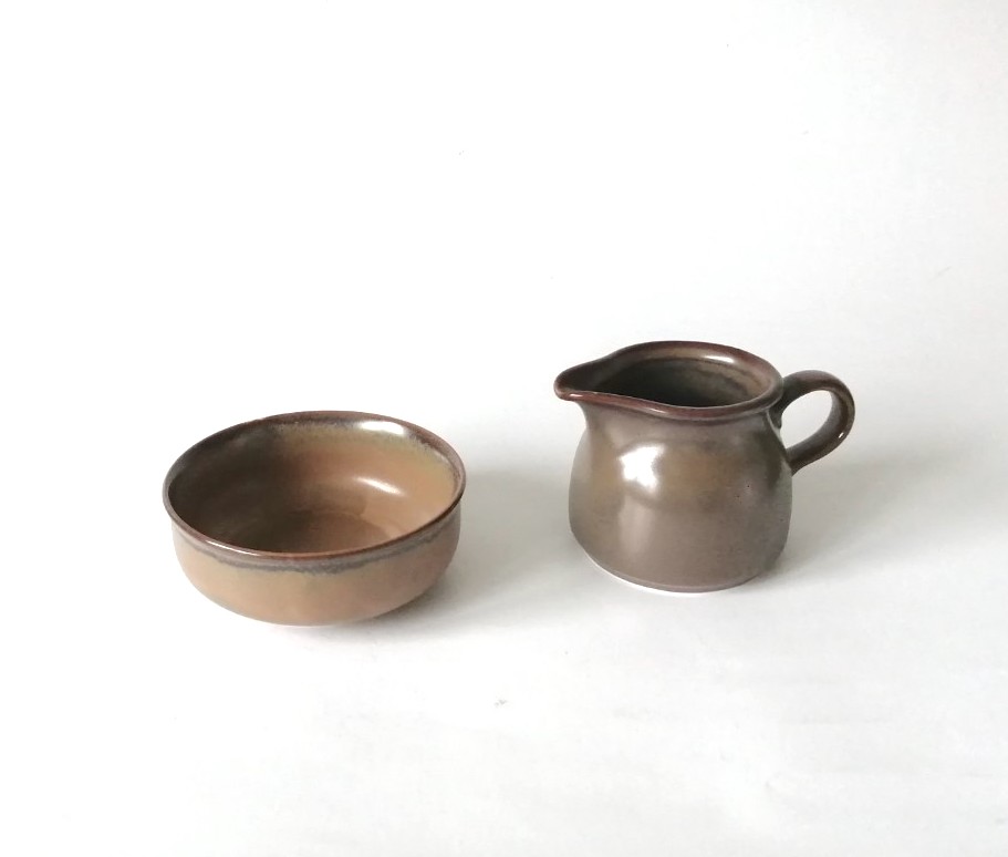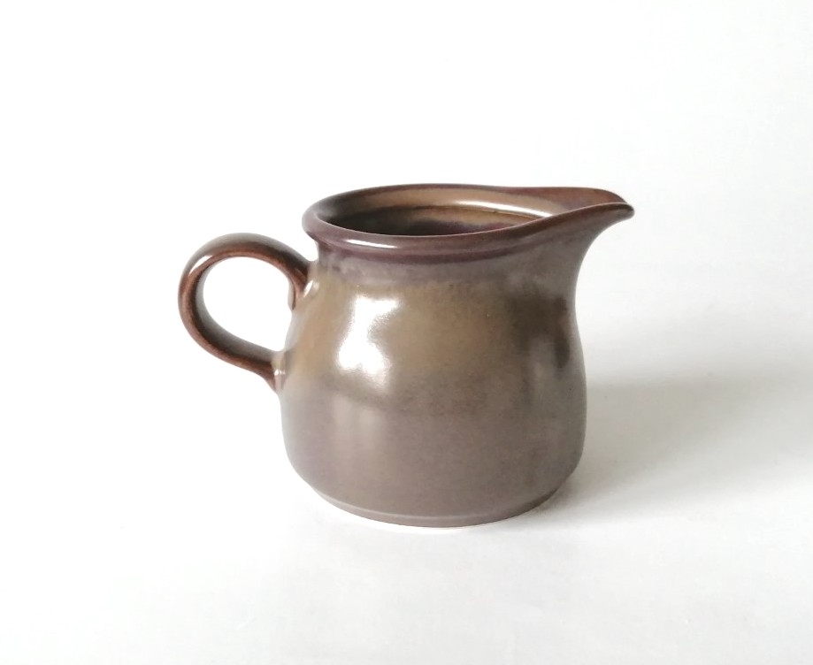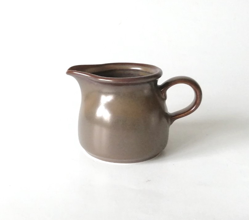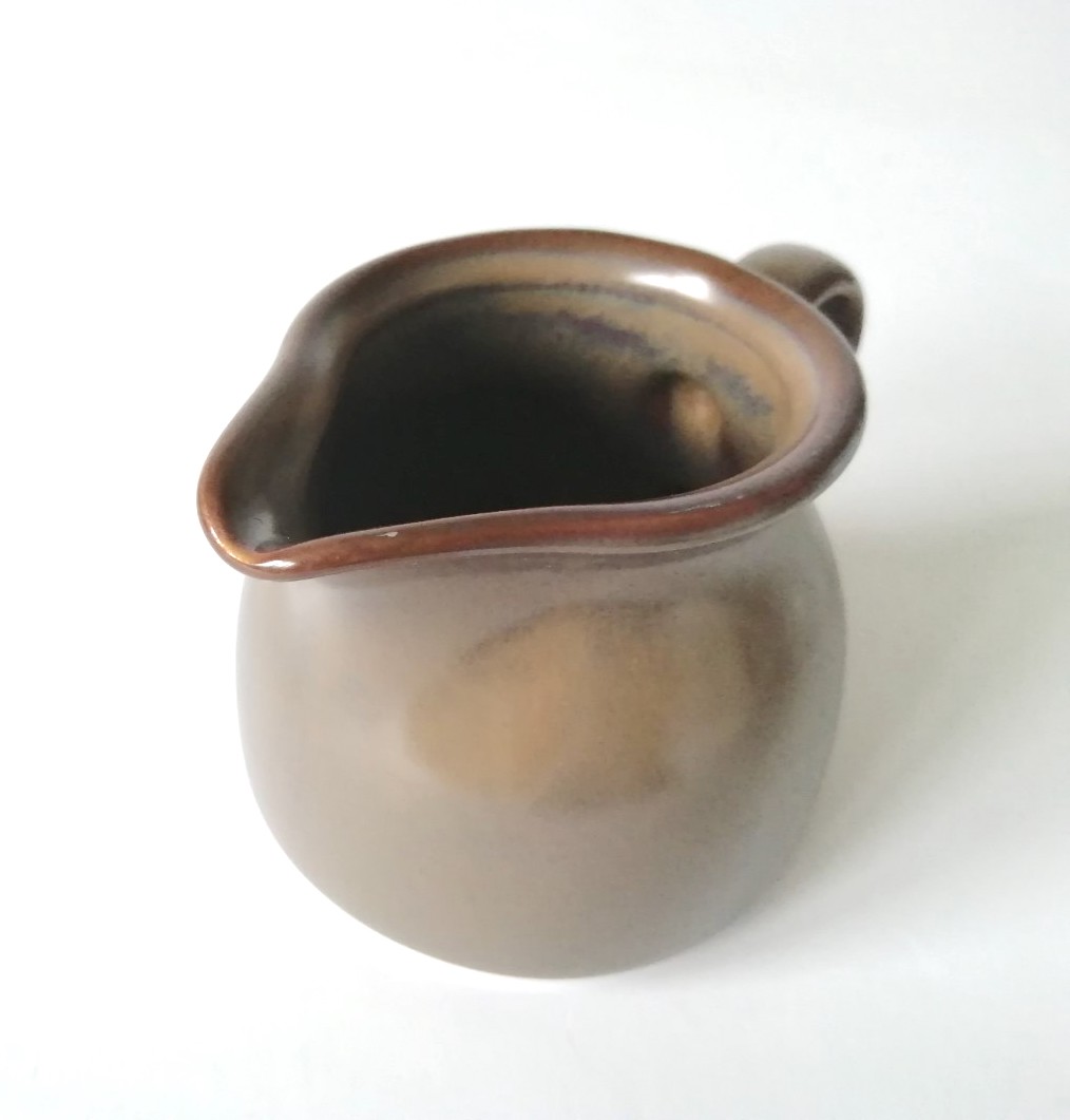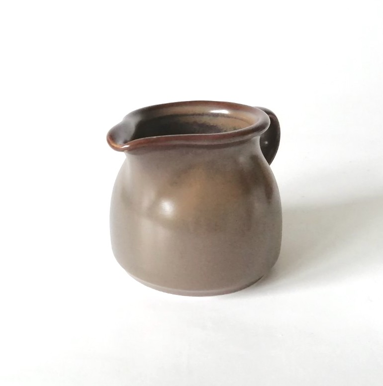 Niewielki elegancki ceramiczny dzbanuszek, czy też mlecznik. Oszczędna, prosta forma o miękko poprowadzonych liniach ładnie harmonizuje z minimalistycznym wybawieniem w przenikających się to cieplejszych, to chłodniejszych odcieniach brązu.