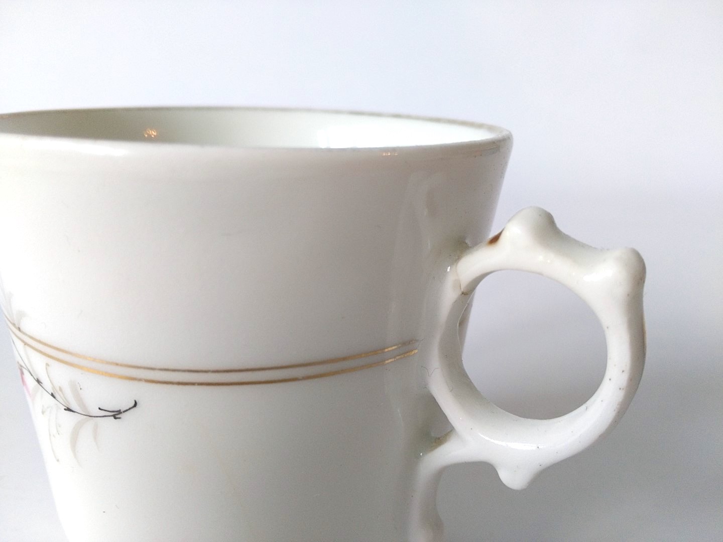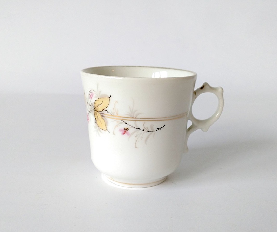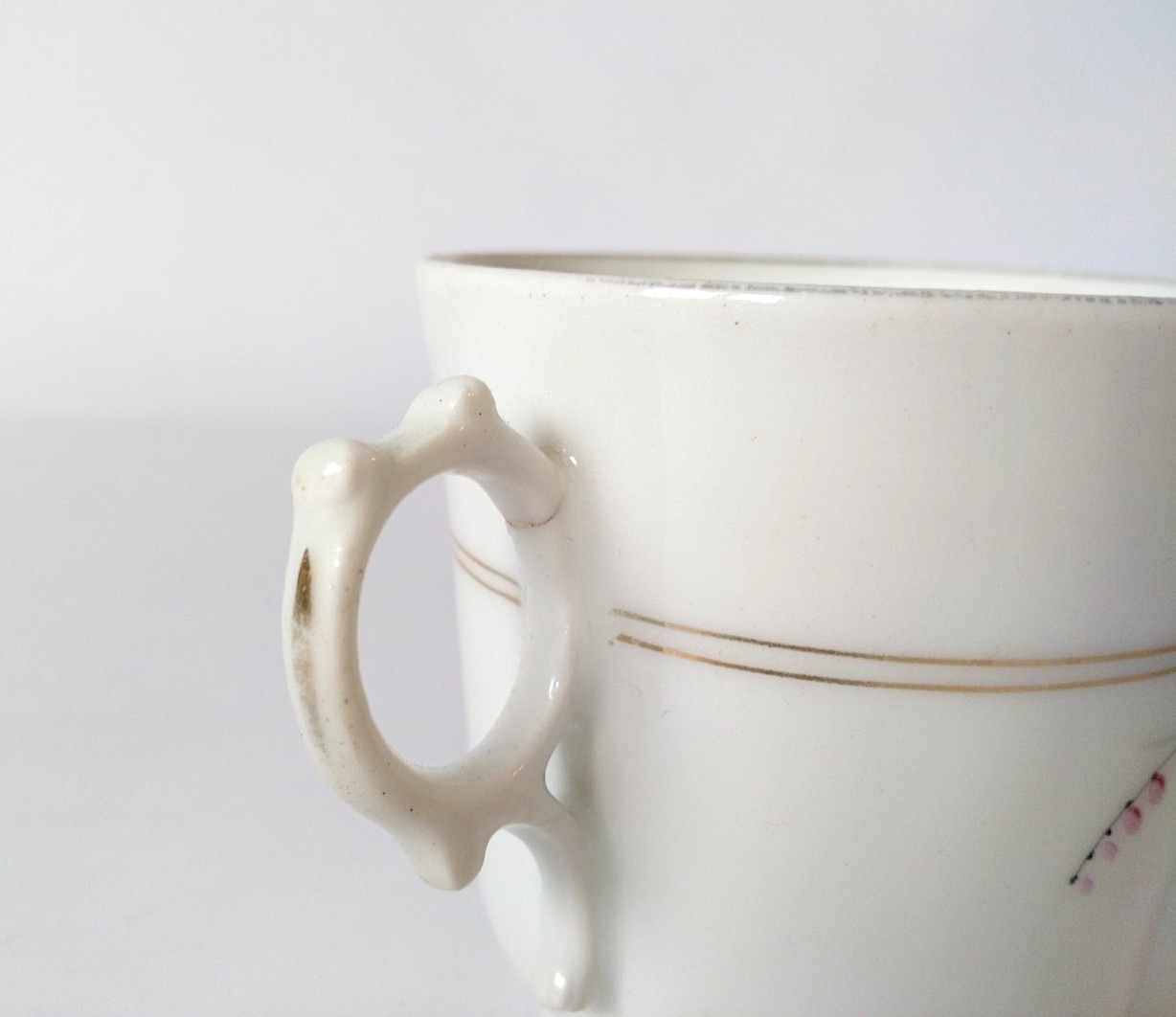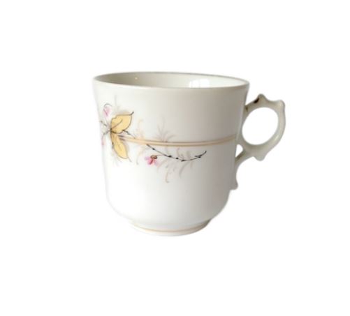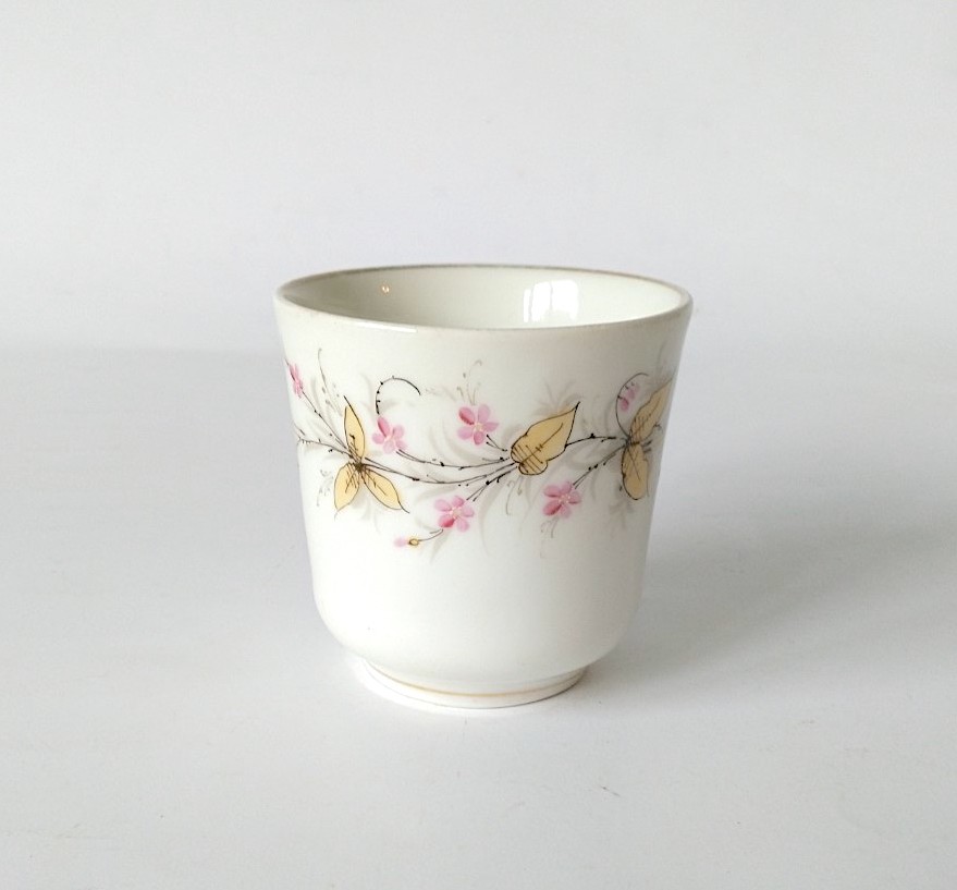 Ręcznie malowana dekoracja w formie pasowego ornamentu roślinnego z motywem różowych kwiatów i złotych detali. Subtelna, pastelowa kolorystyka oraz delikatne złocenia nadają naczyniu salonowej elegancji i lekkości.