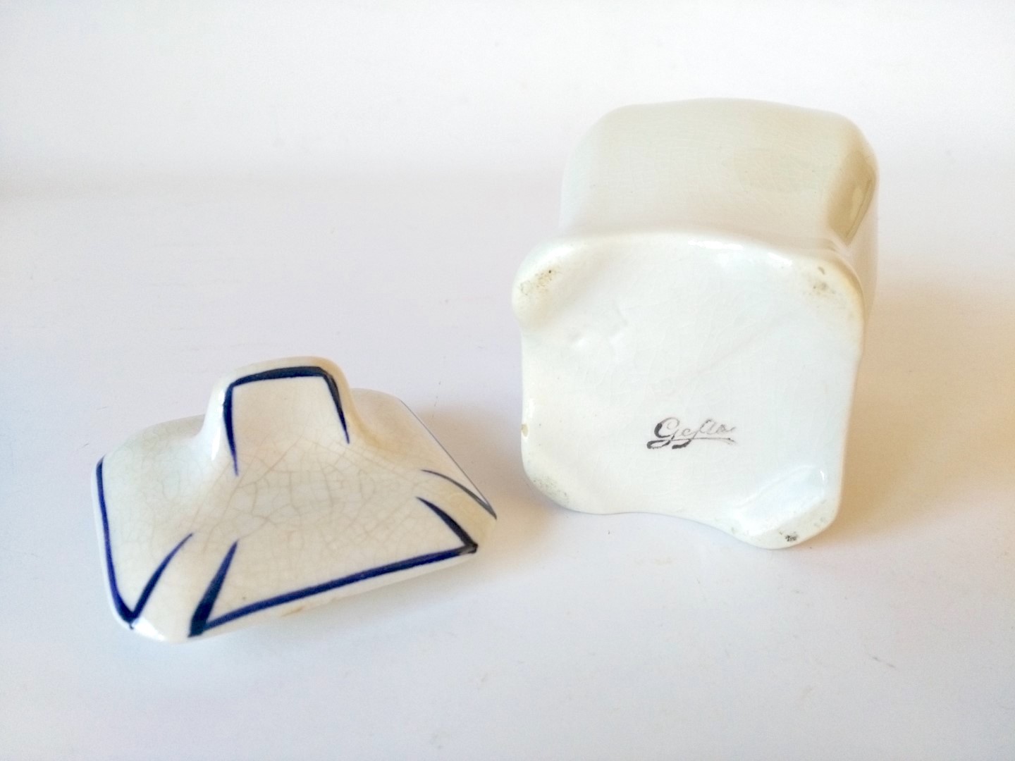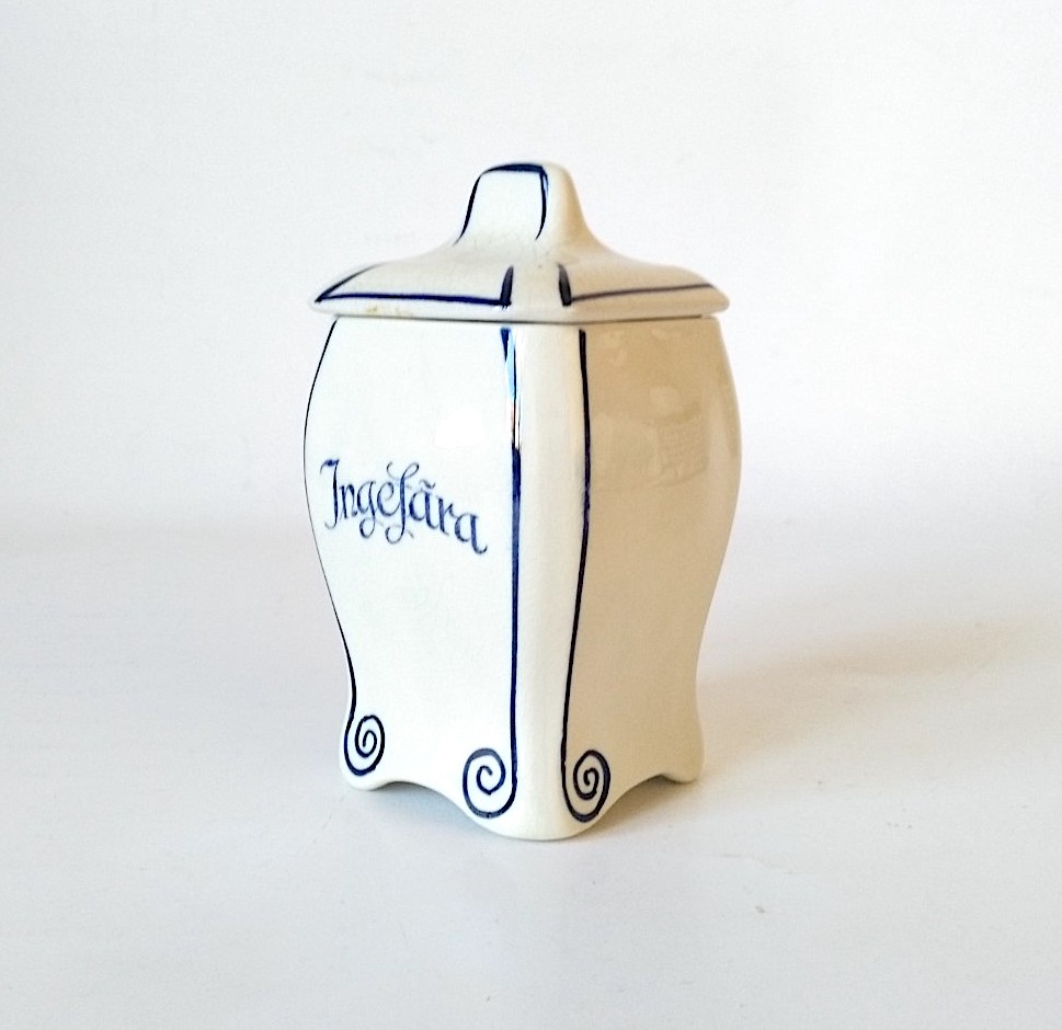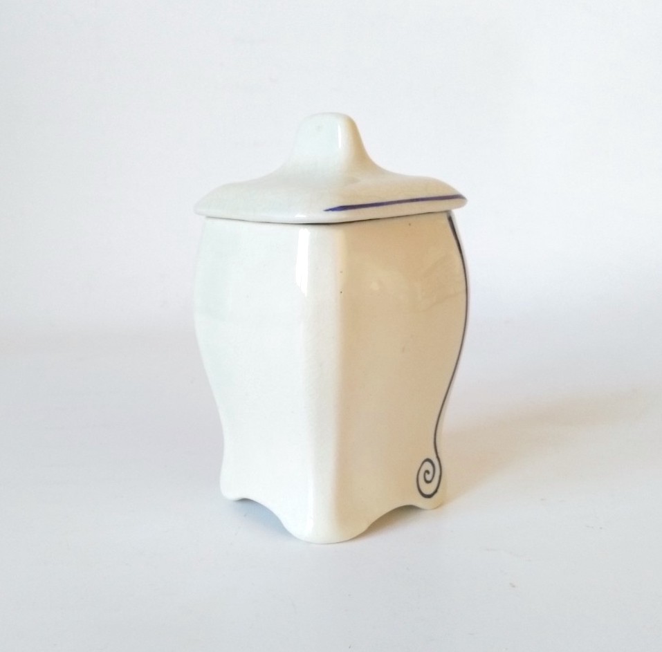 Pojemnik charakteryzuje się nieco bardziej wymyślnym i ozdobnym fasonem i dekoracją, niż zazwyczaj spotykane w przypadku pojemników do przechowywania żywności.