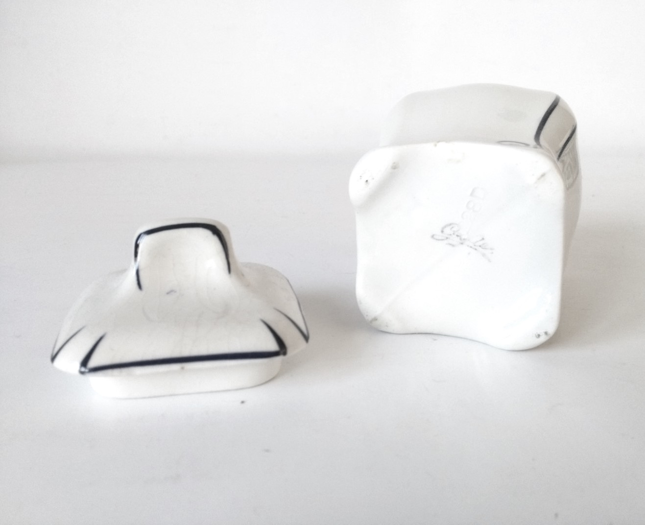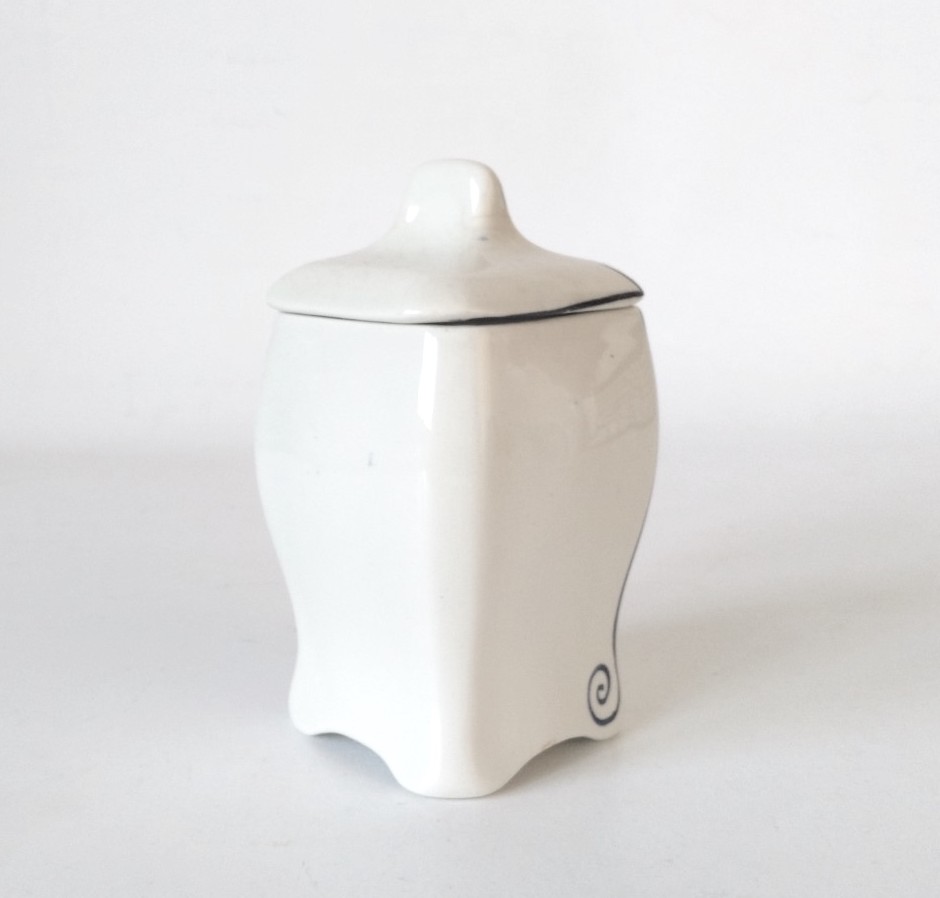 Pojemnik charakteryzuje się nieco bardziej wymyślnym i ozdobnym fasonem i dekoracją, niż zazwyczaj spotykane w przypadku pojemników do przechowywania żywności.