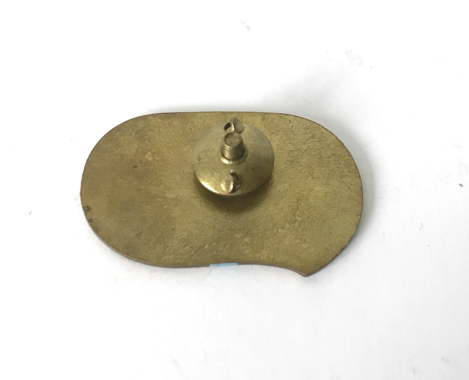 Obiekt wykonany z metalu, pokryty kolorową emalią. Zapięcie: klasyczna śruba z nakrętką (tzw. „słupek”), co było standardem dla solidniejszych odznak z tamtego okresu.