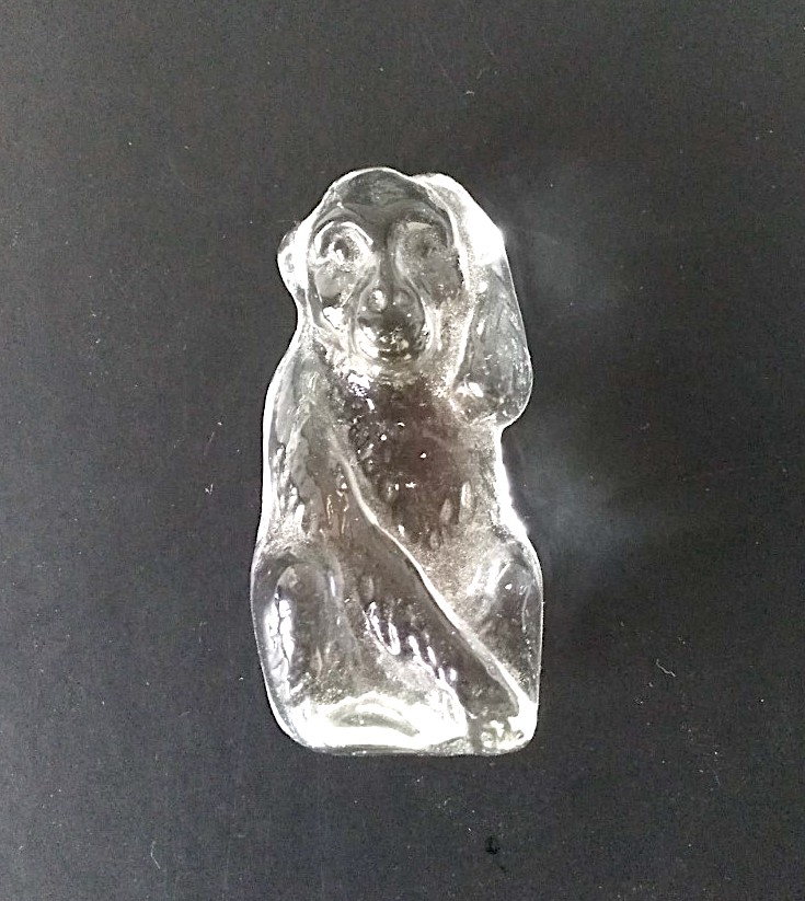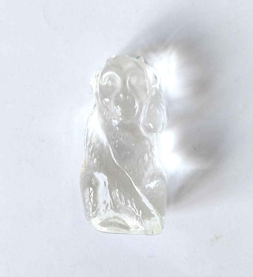 Małpka sprawdzi się nie tylko jako dekoracja, lecz także jako mały przycisk do papieru. Brak zbędnych dekoracji akcentuje wysoką przejrzystość materiału, co pozwala na swobodną ekspozycję figurki w dowolnej aranżacji wnętrzarskiej – od klasycznych witryn po modernistyczne biurka.