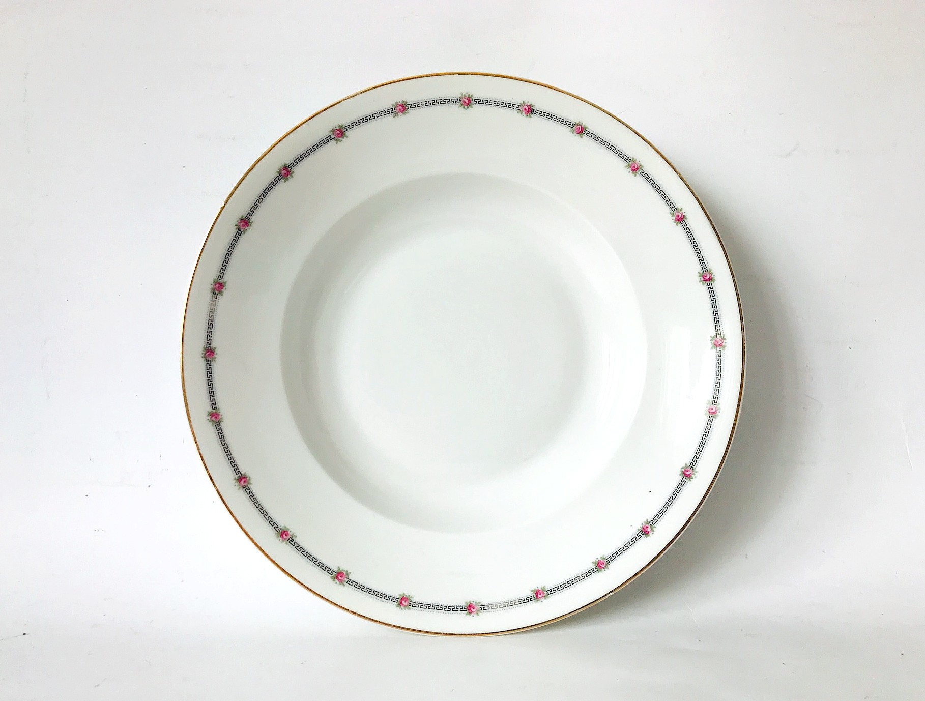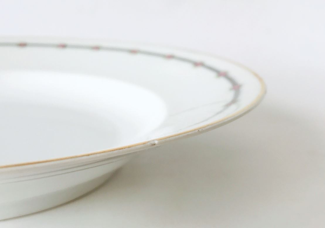 Inskrypcja na spodzie: Zeh Scherzer & Co / Bavaria. Talerz zachowany w dobrym stanie, z czytelną sygnaturą i dobrze zachowaną dekoracją malarską oraz złoceniami. Jedyny mankament to niewielki ubytek porcelany na rancie, pokazany z bliska na fotografii. To autentyczne świadectwo europejskiego rzemiosła artystycznego okresu Belle Époque, które wniesie historyczny sznyt do każdej stylowej jadalni.