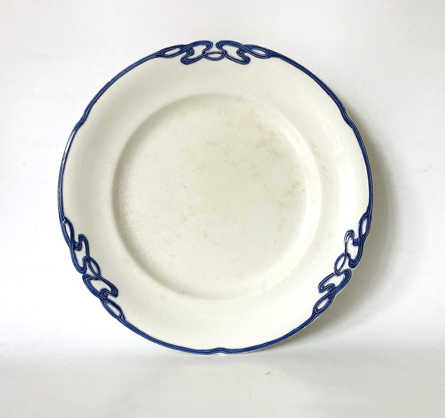 Prezentowany egzemplarz reprezentuje styl secesyjny, widoczny w organicznym, wijącym się motywie bordiury w kolorze kobaltowym. Charakterystyczna dla tego okresu asymetria i płynność linii przywodzi na myśl estetykę Jugendstil, popularną w Niemczech i krajach ościennych. Dekoracja została naniesiona ręcznie z niezwykłą precyzją, co dodatkowo podkreśla unikalność obiektu.