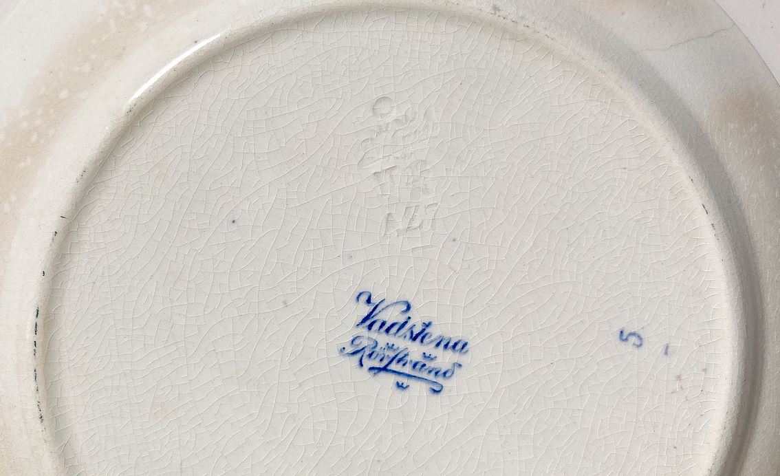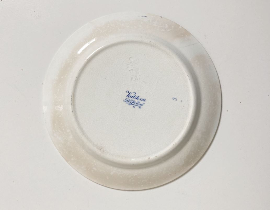 Seria z motywem „Vadstena” była produkowana w zakładach Rörstrand w latach 1929–1940. Forma talerza jest klasyczna, o miękkich, zaokrąglonych liniach, z dekoracją kwiatową w centralnej części oraz ornamentalnym wzorem na kołnierzu.