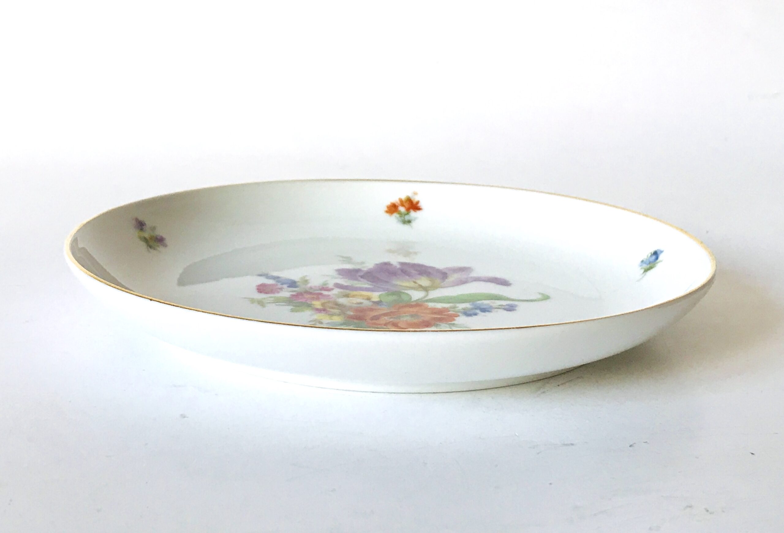 Porcelana zachowana w bardzo dobrym stanie – zarówno porcelana, kwiatowe dekoracje, jak i złocenia.